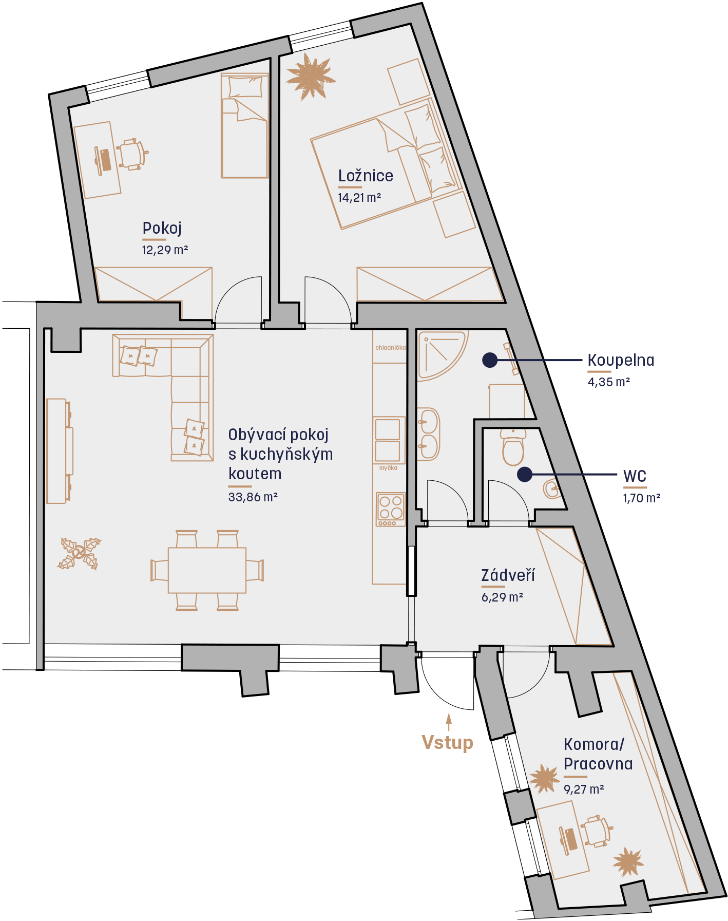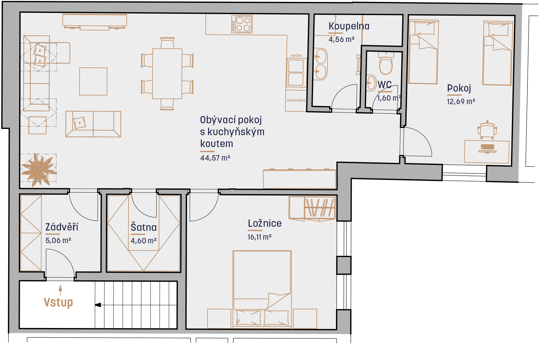 | 7 | 4 + kk | 2 NP, 3NP | 100,91 m² | 66,00 m² | na vyžádání | volný | |