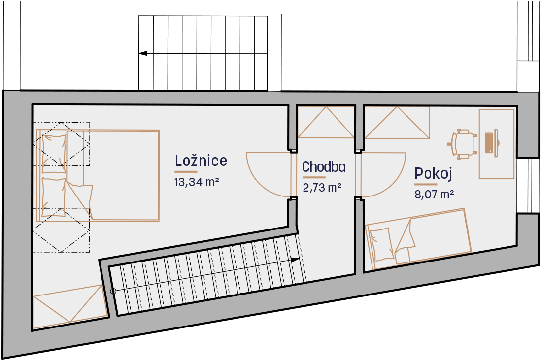 | 8 | 3 + kk | 2 NP, 3NP | 63,57 m² | 33,00 m² | na vyžádání | volný | |