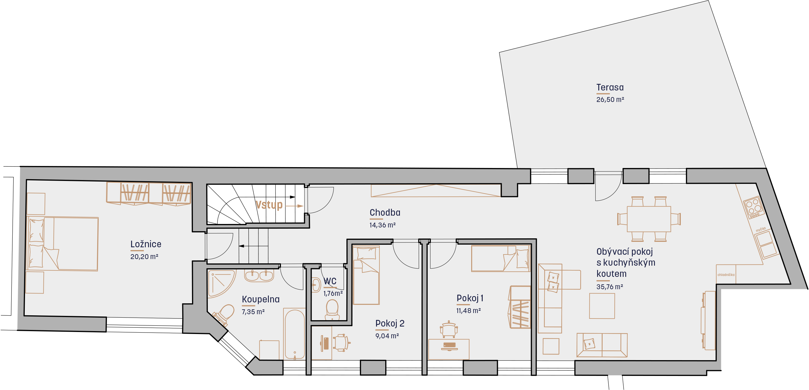 2. NP35,76 m² 7,35 m² 1,76 m² 11,48 m² 9,04 m² 20,20 m² 14,36 m² 99,95 m²