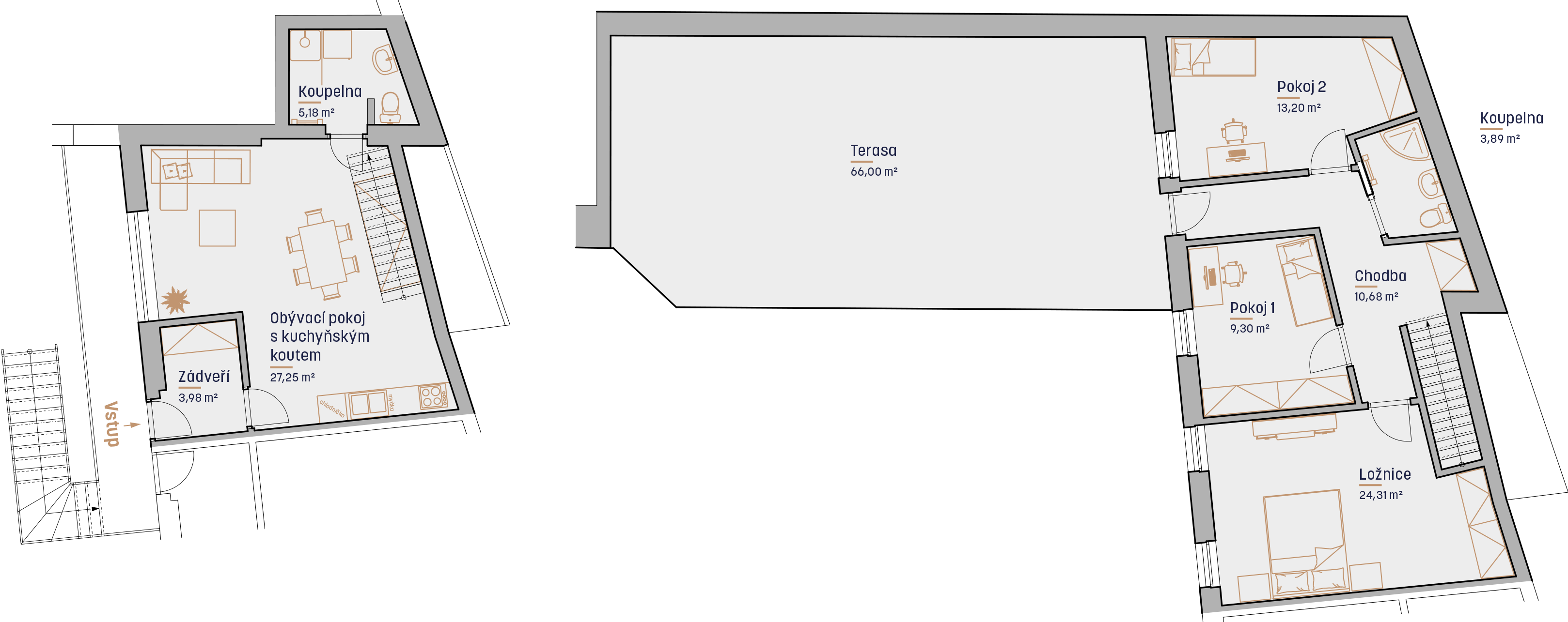 2. a 3. NP27,25 m² 3,98 m² 3,12 m² 5,18 m² 10,68 m² 3,89 m² 9,30 m² 13,20 m² 24,31 m² 100,91 m²